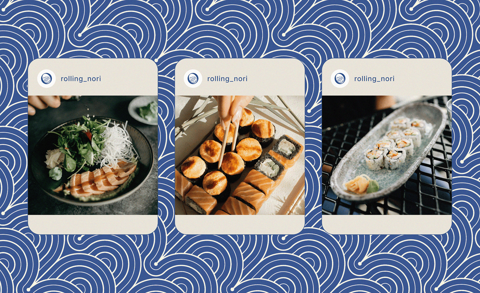 Northloom Solutions developed a refined brand identity and packaging design for Rolling Nori, a modern sushi concept aiming to position itself within the premium hospitality and food industry. The objective was to create a clean, sophisticated visual language that reflects quality, precision, and a high-end dining experience.